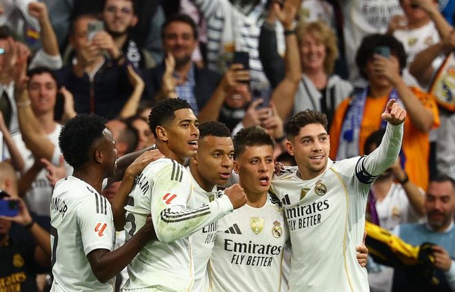 皇马排出4141阵型。姆巴佩顶在最前面。贝林厄姆、卡马文加、居莱尔和维尼修斯联袂出击。楚阿梅尼单后腰。巴尔韦德、米利唐、赫伊森和阿尔瓦罗-卡雷拉斯4后卫首发出战。库尔图瓦担任首发门将。罗德里戈、恩德里克、迪亚斯、马斯坦托诺和贡萨洛-加西亚这几名前锋都被放在替补席。